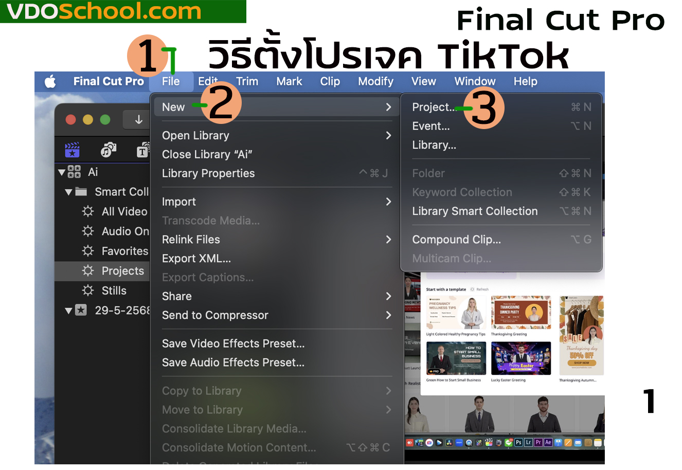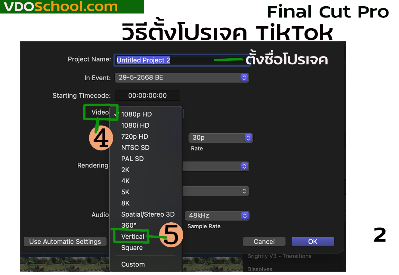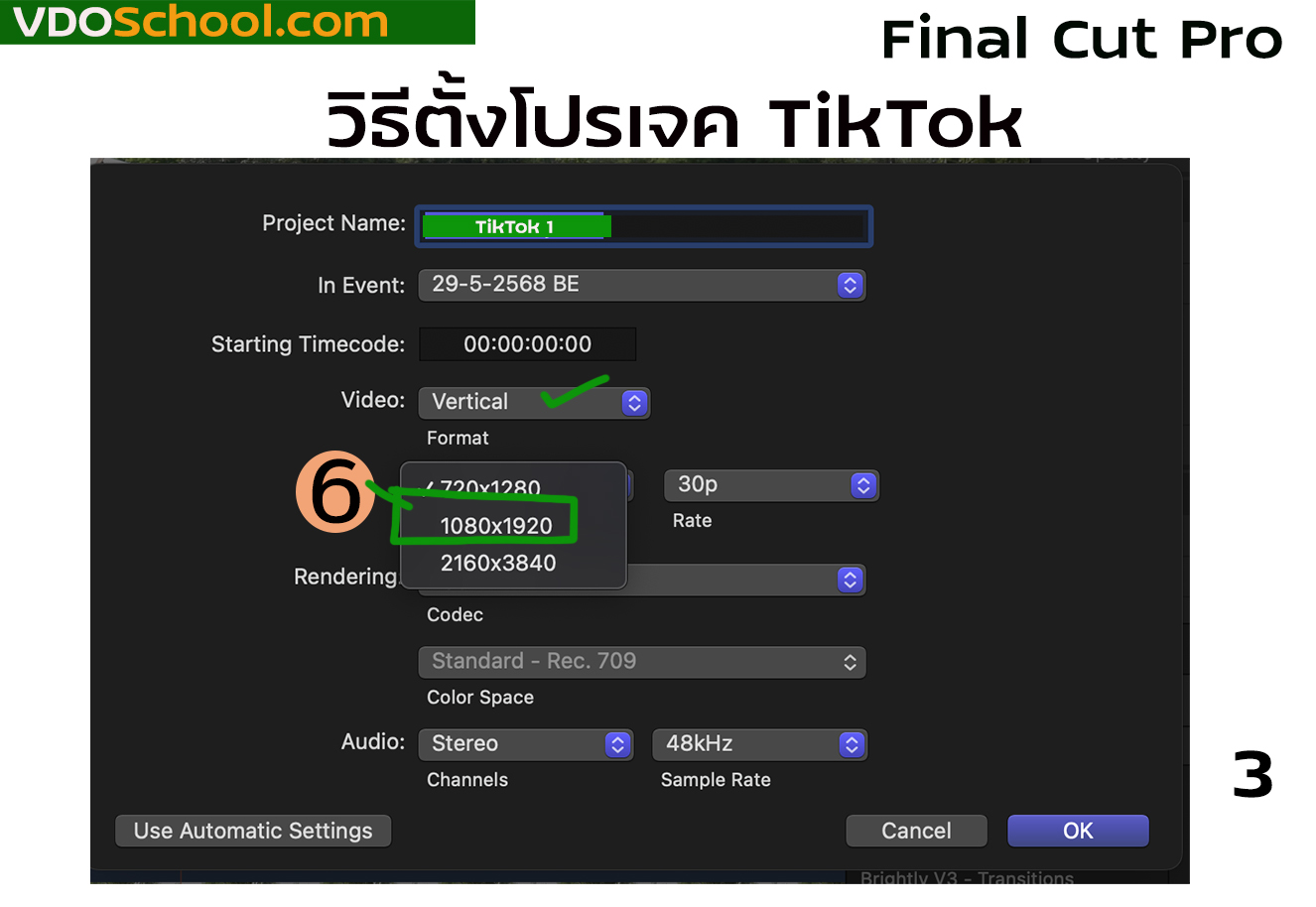 การตั้งโปรเจคใน Final Cut Pro แบบ TikTok ,วิธีตั้งโปรเจค แบบTikTok ติ๊กตอก, แนวตั้ง , หน้าจอมือถือ ,ยูทูปช๊อต PDF พิมพ์ อีเมล